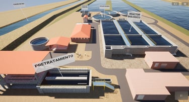 Se desarrollo la propuesta visual y en la elaboración de la ingeniería de detalle para la tubería de conexión entre los diferentes equipos del sistema de tratamiento de aguas residuales. El proyecto incluyó la virtualización en 3D de equipos, sistemas y entornos, con el fin de representar la línea conceptual y facilitar la comprensión integral del proceso. Esta metodología permitió integrar de manera eficiente la coordinación entre la ingeniería detallada y la previsualización simulada, optimizando la revisión técnica, la detección de interferencias y la comunicación del diseño